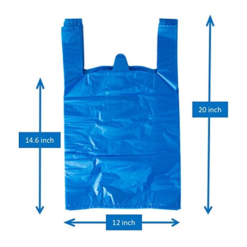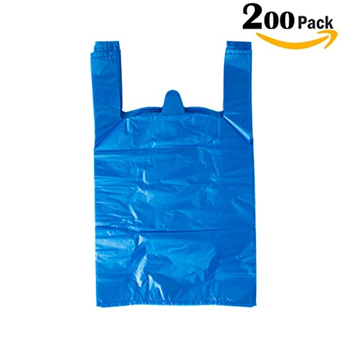 LazyMe Plastic Thick Blue T Shirt Bags, Handle Shopping Bags, Multi-Use Large Size Merchandise Bags, Blue Plain Grocery Bags, Durable, 12 x 20 inch, 200 Pcs (200, Blue) (200)