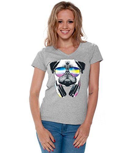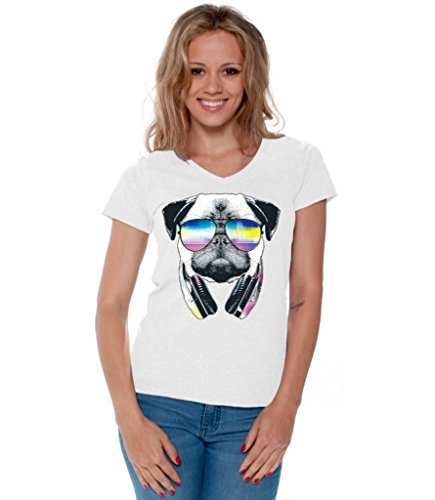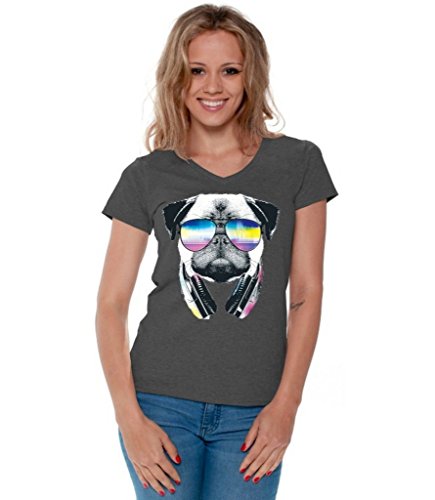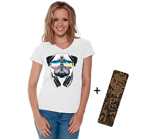 -. Title : Awkwardstyles Women's Pug Music Revision V-Neck T-Shirt Animal Shirt + Bookmark
