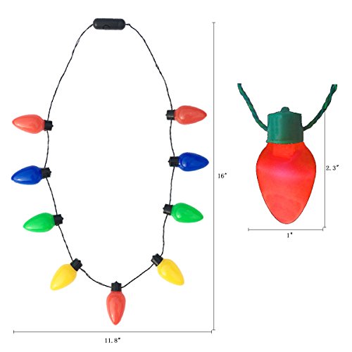- EXQUISITE BLINKING Birthday NECKLACE. Large 2 1/2”multi-colored premium quality plastic LED 9 light bulbs in red, blue, green and yellow, hang on a 35”long necklace.