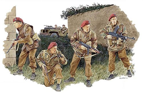 第二次世界大戦中の1941年、イギリス陸軍のデビット・スターリング少佐の提案により創設されたのがスペシャル・ エア・サービス(SAS)と呼ばれる特殊部隊です。小グループで敵陣深く侵入し敵飛行場の航空機を破壊したり、 偵察や後方攪乱などの任務を目的としていました。北アフリカ戦線やヨーロッパ戦線で、後方攪乱などにその力を 発揮したのです。 モデルは第二次大戦後半、Dデイ以降のフランスで活動するSASの兵士4体を1/35スケールで再現。周囲に注意を 払いながら銃を構えて警戒する緊張感あふれるポーズのフィギュアです。 頭には赤いベレー帽を被り、3体は迷彩スモックを着用、1体はジャーキンと呼ばれる革のバトルドレスジャケットを 着用した姿でモデル化されています。手にする銃器はアメリカとイギリスの混合。アメリカのM1カービン、スティック 弾倉つきのM1928A1トンプソンサブマシンガン、そしてイギリスのブレンガンがセットされています。 Dデイ以降のフランスにおいて奮戦する様子がリアルに再現された緊迫感あふれるセットです。単体でのビネットや 車両と組み合わせての情景作りでも活躍します。Feature