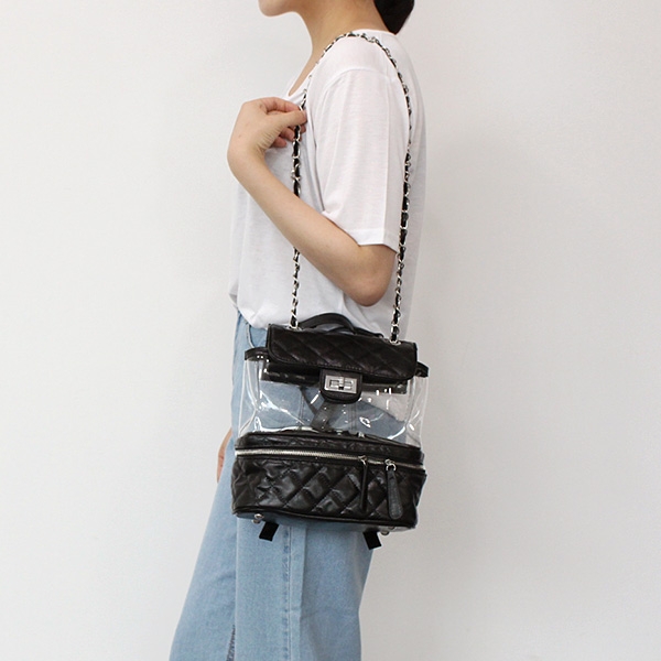|  투명한 pvc 소재의 백팩으로 깔끔하면서도 스타일리쉬하게 코디할 수 있는 체인 백팩 아이템이에요!