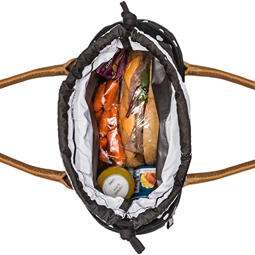 The insulated lining maintains the food cold or warm, for salad or soup days alike. The drawstring closure ensures an optimal environment for the food.