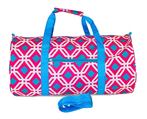Product Description Don't get lost in a sea of black gym bags! Stand out in style with this fun print! This piece of lightweight luggage is great for gym workout enthusiast and can be used for a quick, close by staycation or for a weekend excursion to your favorite retreat. It's chic and fashionable design makes it a perfect choice for transporting gear for dance teams and cheer squads too! Also makes an ideal personality flaunting gym bag! You can carry your cute duffle by its included durable, detachable shoulder strap or slide it easily over the handle of a rolling suitcase for stress-free and efficient, stylish transport. Fully lined with black linen, keeping it clean is easy! Never lose your boarding pass, ID, or other smaller items with an exterior zipper pocket on the front of this security checkpoint friendly bag. 0
