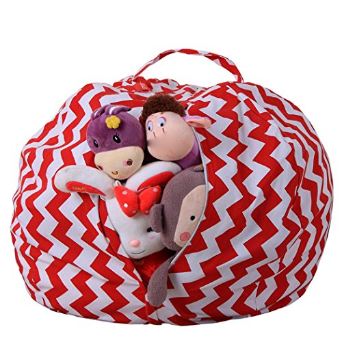 (Albatron)/Bedding Bath/Bedding/DIRECT FROM USA/Albatron Kids Stuffed Animal Plush Toy Storage Bean Bag Soft Pouch Stripe Fabric Chair Red (C)