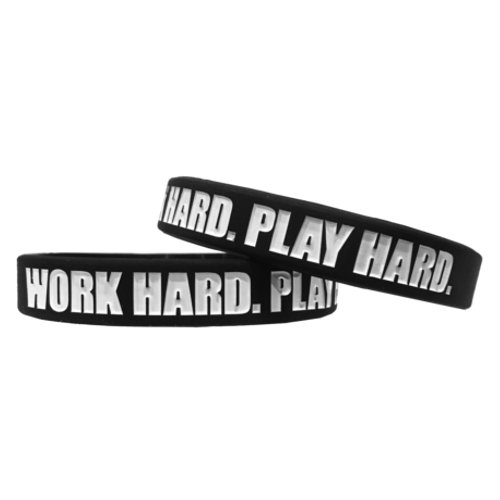 -. Title : "WORK HARD. PLAY HARD." Motivational Wristband!