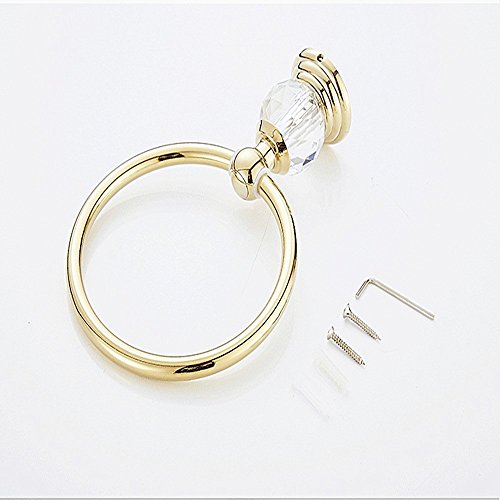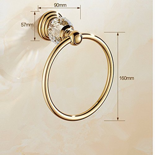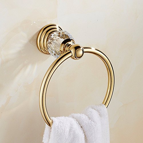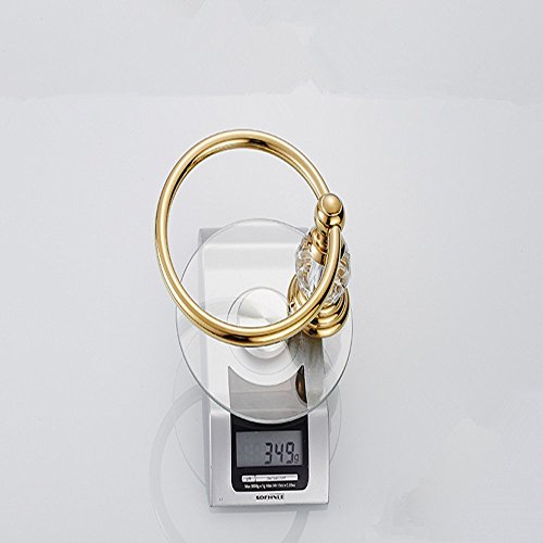 YUTU JSJ03 Gold Bathroom Crystal Towel Ring Wall Mounted Polished Antique Brass Towel Holder