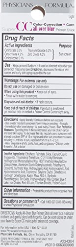 1st ever 2-in-1 Primer + CC Stick features a high-tech formula which instantly blurs imperfections, fine lines, wrinkles, dark circles, discoloration and signs of fatigue while evening out skin tone. Revolutionary multi-tasking miracle blends effortlessly delivering an ultra-smooth flawless finish and can be used as a Concealer, Primer, Foundation and Touch-up Tool. Versatile All-Over-Blur stick can be used under makeup creating a perfect canvas for smooth and even application or alone for quick and easy touch-ups on the go. Color-Correcting Primer blends together to blur imperfections: Yellow corrects blue imperfections and warms skin tone; Green tones down redness; Pink brightens and illuminates. Anti-aging brighteners restore a look of radiance and smoothness. SPF 30 protects from UVA/UVB rays, helping to prevent future damage.Feature
