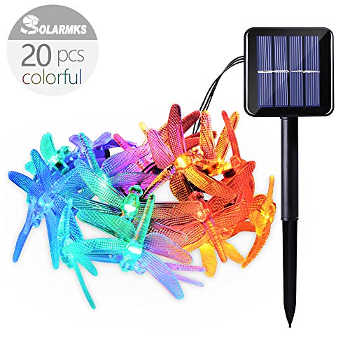 Solarmks Dragonfly Solar Lights Outdoor String Lights ,8 Mode 20 LED Fairy Lights,Outdoor Landscape Lighting for Patio,Lawn,Yard,House,Garden,Christmas Decoration ,Multi Color