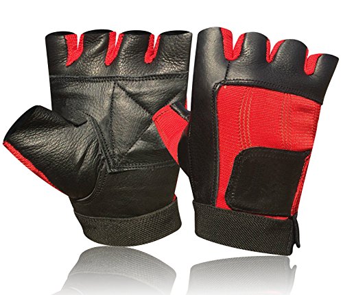 -. Title : Weight Lifting Padded Leather Gloves Fitness Training Body Building Gym Exercise Sports & Wheel Chair Use (Red, X-Large)