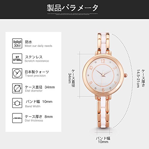 その他 機能:ピンクゴールド, ビッグフェイス, ホワイト文字盤, 日本製のクオーツムーブメント, 30メートル生活防水