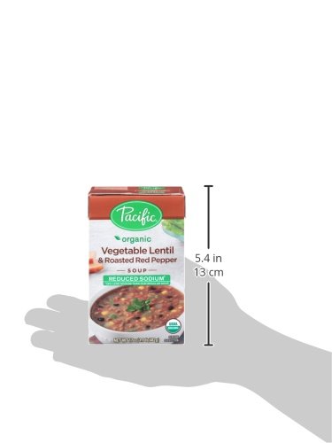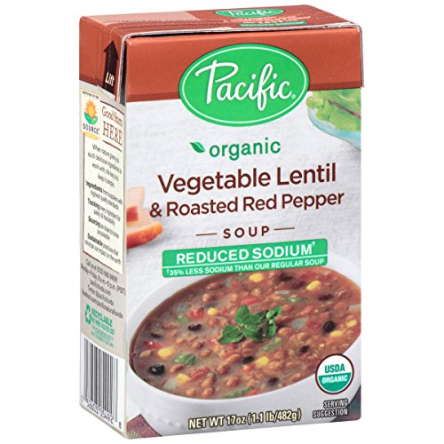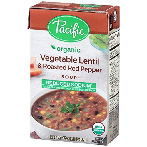 Pacific Foods Organic Soup, Reduced Sodium Vegetable Lentil and Roasted Red Pepper, 17 Ounce (Pack of 12)