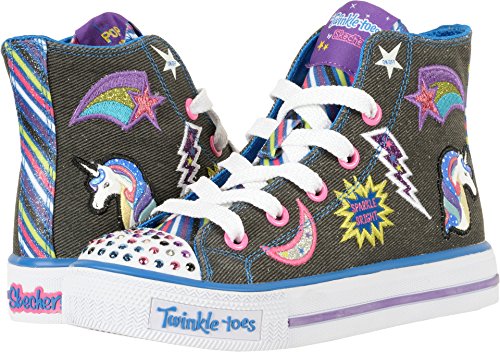 Skechers Kids Girls' Shuffles-Twist N'Turns Sneaker, Denim/Multi, 11 M US Little Kid