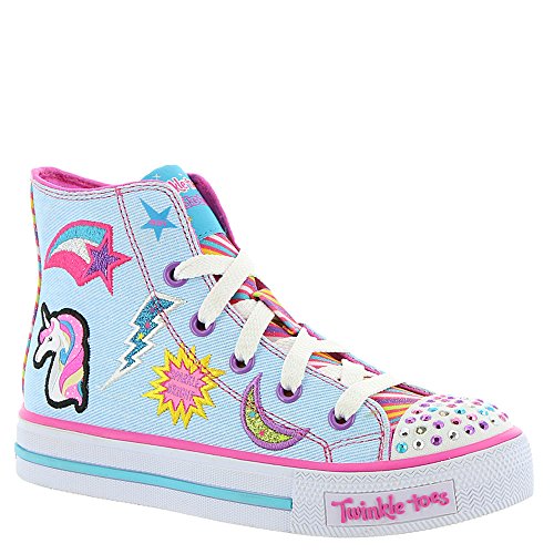Skechers Kids Girls' Shuffles-Twist N'Turns Sneaker, Denim/Multi, 1 M US Little Kid
