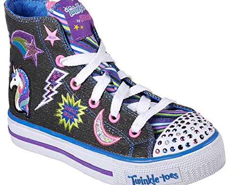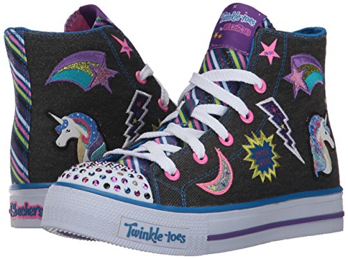Skechers Kids Girls' Shuffles-Twist N'Turns Sneaker, Denim/Multi, 12.5 M US Little Kid