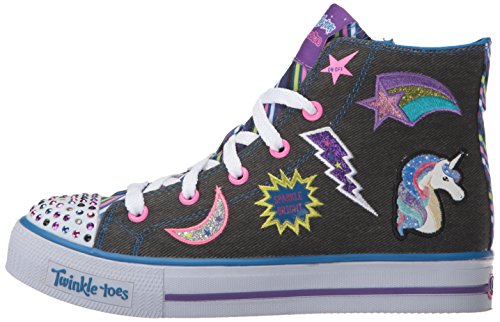 Skechers Kids Girls' Shuffles-Twist N'Turns Sneaker, Denim/Multi, 2 M US Little Kid