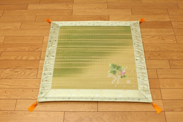 【商品名】純国産/日本製 減農薬い草使用 御前(仏前)座布団 『彩花 環良草』 グリーン 約70×70cm