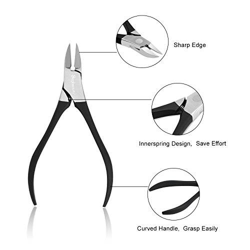 FEELING GOOD IN THE HAND---- The black coating on the handles feels between rubbery and velvety, not slippery at all, and gives you complete control when dealing with those delicate areas on your feet and toenails. The spring mechanism makes it work smoothly and too little strength to operate, close and release automatically when you squeeze slightly.