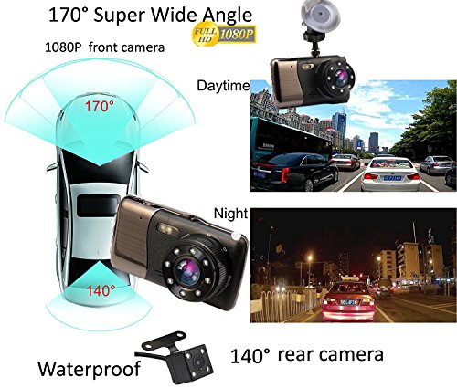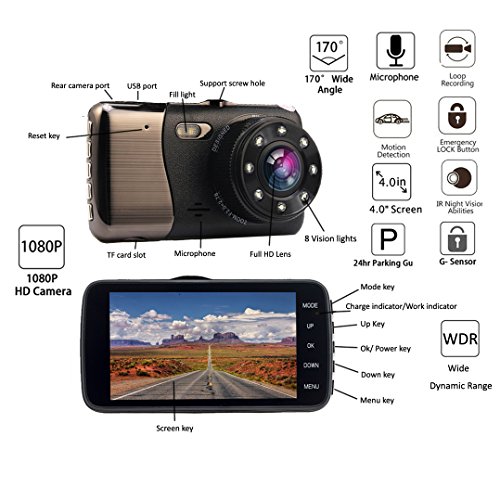 *【High Resolution】: Full-HD Video 1920*1080 at 30 fps, super wide 170° angle, and 4.0" LCD Display that can captures the license plates cars, road signs and other things in the night vision as clear as possible.