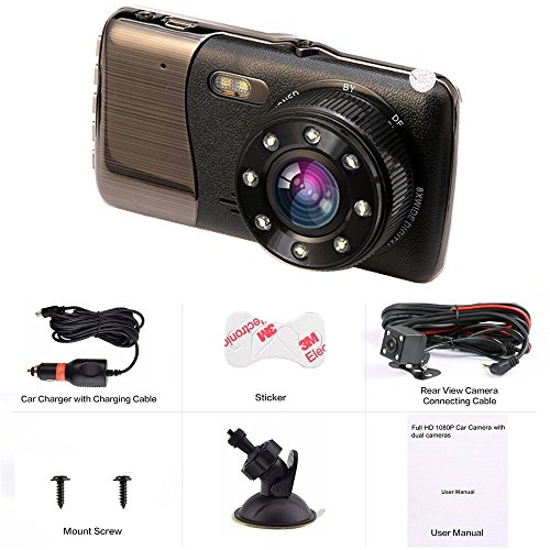Veoker Ultra Full HD1080P 1920x1080 170 Degree Wide Angle 4 Inch LCD Car Dash Cam DVR Recorder Video Dual Lens with G-Sensor Night Vision & Parking Monitor WDR Loop Recording
