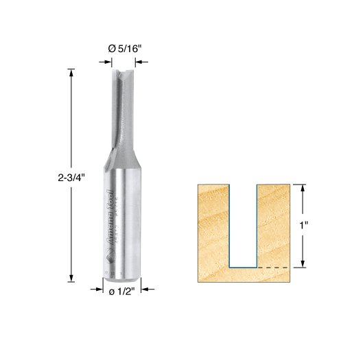 Amana Tool 45412 Straight Plunge 5/16-Inch Diameter by 1-Inch Cutting Height by 1/2-Inch Shank Solid Carbide Router Bit