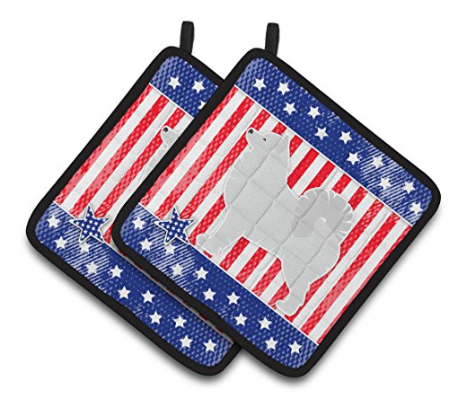 Caroline's Treasures USA Patriotic Samoyed Pair of Pot Holders BB3359PTHD, 7.5HX7.5W, Multicolor