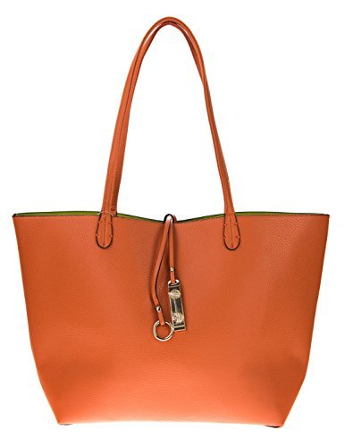 Features: reversible, change the way it looks by turning the tote inside out; high quality classic design tote with detachable pouch; decorative string with logo; 1 sunglass a1 cell phone and 1 wall zipper pocket in pouch.
