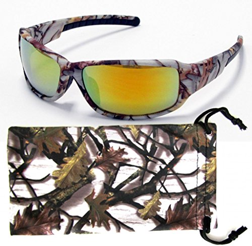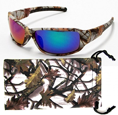 VertX Camouflage Sunglasses are extreme sport sunglasses with extreme style, and at amazing prices. VertX Sunglasses are great for hunting, fishing and any sports or outdoor needs and maintain a high level of functionality. Non-slip rubber grips help keep your sunglasses secure when you are wearing them. Great for people with active life styles. Polycarbonate, shatter proof, scratch resistant, and UV400 offer excellent protection for your eyes.Feature