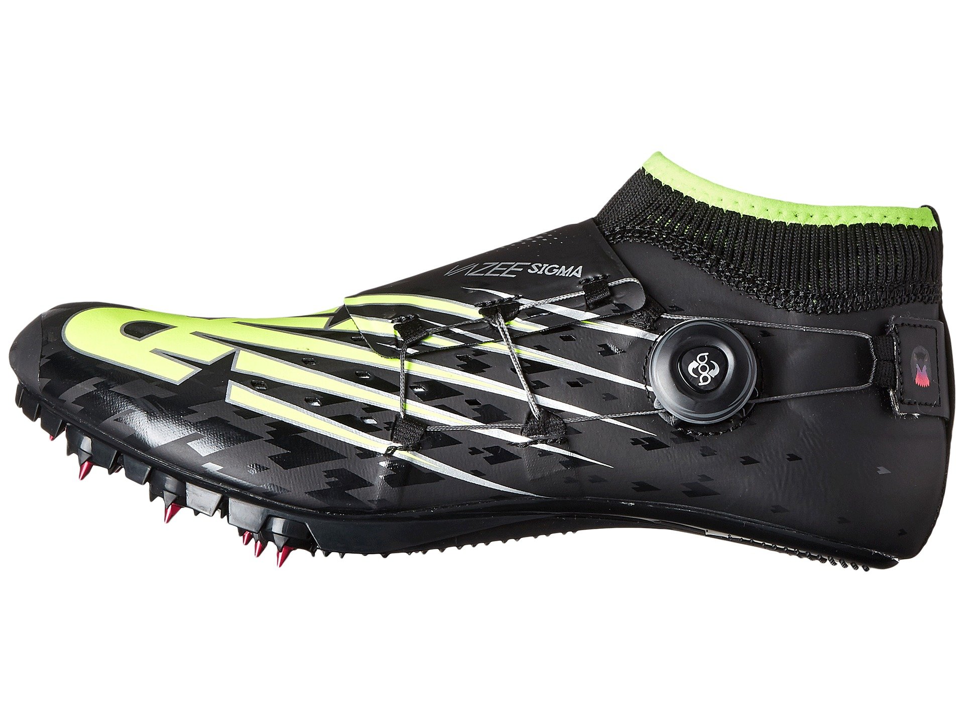 | Product Information SKU: #8817074Supercharge your run with the lightning-quick speed of the New Balance? Vazee Sigma racing spike.Track and field racing spike. Synthetic upper materials. No-sew upper application helps reduce the likelihood of irritation. boa? closure system allows for precise adjustments that promote a custom fit. Bootie construction offers a snug, secure feel. Textile bootie and interior offers a great next-to-foot feel. Thin textile footbed. Eight-spike configuration delivers aggressive traction. Last: RL-2.Imported. Product measurements were taken using size 9.5, width D - Medium. Please note that measurements may vary by size.Weight of footwear is based on a single item, not a pair.Measurements: Weight: 6.4 oz |