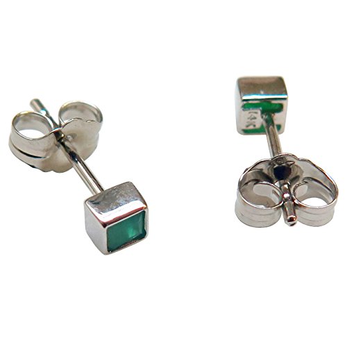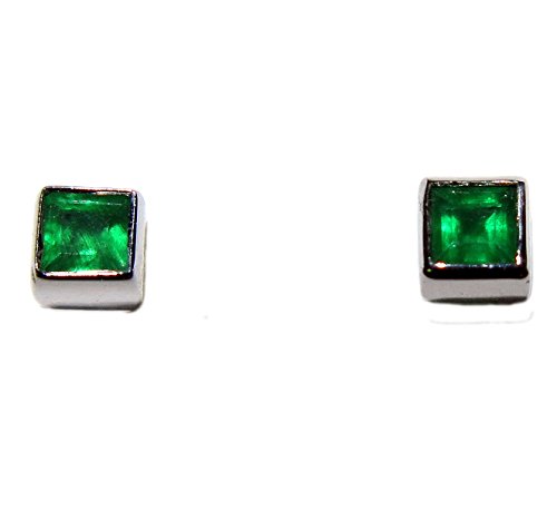 These 14K gold small square shape bezel set earrings feature 2.5mm natural princess cut Emeralds with a .15ct total weight While some natural inclusions are inevitable at this price range, the emeralds have good color, and are generally good quality. These earrings are delivered with a gift box and a Certificate of Authenticity. For more than 40 years in business, we always make sure that our customers are satisfied with their purchase, and offer a 30-day money back guarantee.Feature