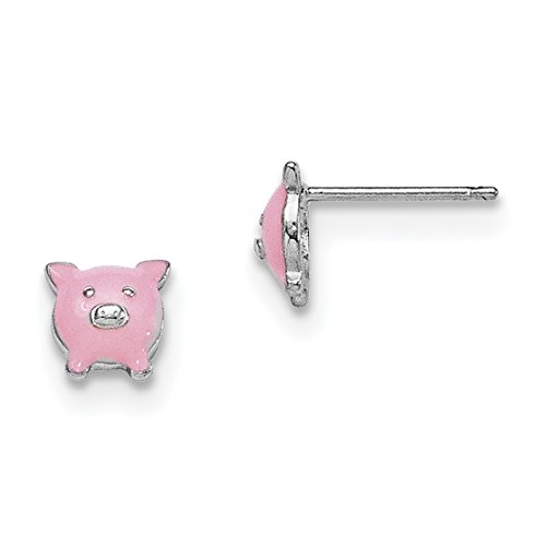 ICECARATS DESIGNER JEWELRY 925 STERLING SILVER ENAMEL PIG POST STUD EARRINGS