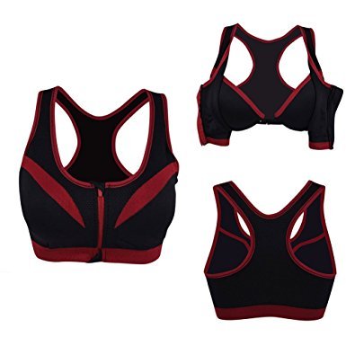 -. Feature : Professional fabrics:Made from moisture-nicking, Sweat-absorbent breathable, sports performance fabrics,good permeability,heat dissipating property;Keep dry and cool when doing high impact sports. / Comfort and fashion:Sexy U-neck design, simple and fashion;Easy-on front zipper locks in place and inner hook for convenient wearing,and wide inner panel underneath the zip to prevent skin contact and chafing:control;Sexy U-neck design, simple and fashion;Easy-on front zipper locks in place and inner hook for convenient wearing,and wide inner panel underneath the zip to prevent skin contact and chafing. / Unique design:Seamless technology offers non-chaffing design for superior comfort and fit;Racerback design with no fastenings - great for floor work & freedom of movement;Less pressure to your back;Enjoy more fun of sports. / More special detail:Special and elaborate double layer design:this bra has two layers of support combining a regular padded bra and a sports bra in one,the inner bra's closure is a clasp, and the sports bra is a zipper.Both the inner padded bra and sports bra open and close in the front making it easy to put on and take off.The zipper also has a little flap to help keep it closed and from unzipping on you while exercising. / Fit for occasion:Perfect for any kinds of physical activities,such as yoga,running,gym exercise,walking,cycling,tennis,etc.