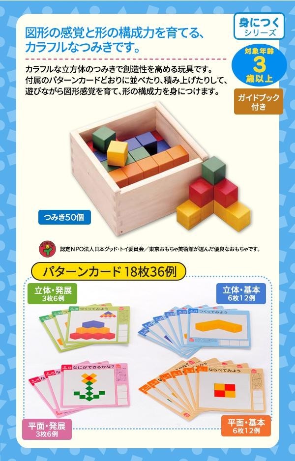 | 図形の感覚と形の構成力を育てる、カラフルなつみき。 |