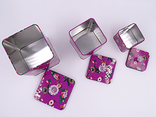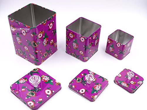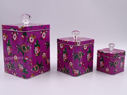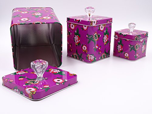 Purple Set Of 3 Cookie Storage Tins, Shabby Chic, With Clear Crystal Knobs & Floral Design....