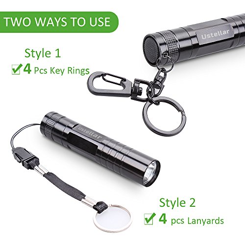 2 CARRYING WAYS: 4-Pack Ustellar keychain flashlight come with 4 key chains and 4 lanyards, depending on your requirements, you can attach the light to pocket, bag, belt, hator anywhere you want.