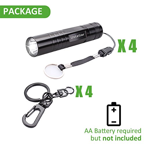 Ustellar 4 Pack Mini LED Keychain Flashlight, Aluminum Flashlight with 4 Lanyards and 4 Key Chains, Battery Powered Flashlight(Not Included), Black Miniature Torch