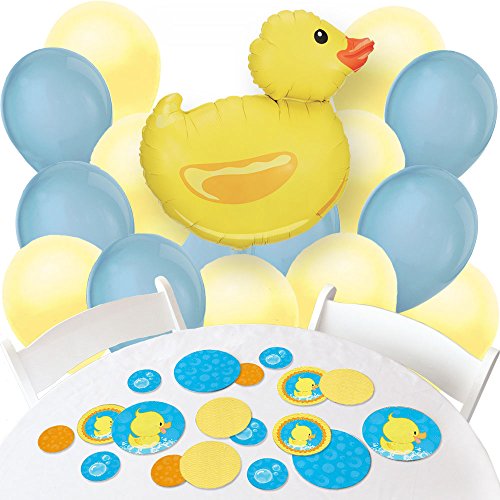 -. Feature : Ducky Duck - Confetti and Balloon Party Decorations - Combo Kit / 1 - Duck Shaped Mylar Balloon is 29" / 16 Pack of 11" latex Balloons - (8 Yellow & 8 Blue). Balloons will arrive flat. / 27-piece Party Table Confetti Kit Contains: 6 - 5.5 inch party circles, 9 - 4.25 inch party circles, 12 - 2.75 inch party circles