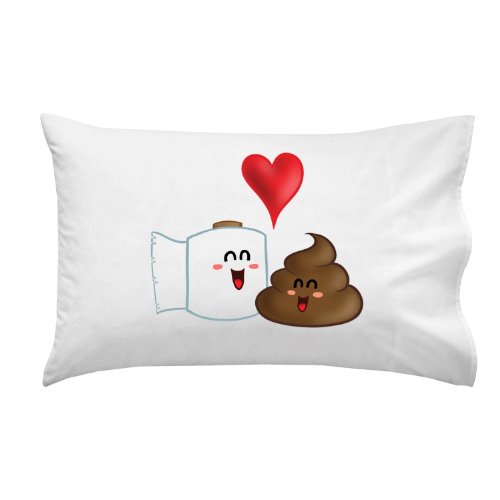 Funny Poop with Toilet Paper "Best Friends" Colorful - Pillow Case Single Pillowcase