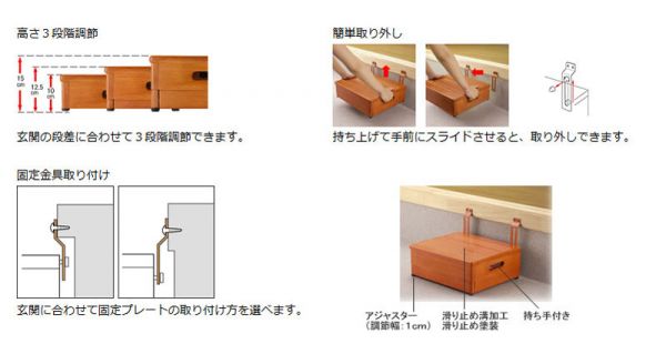 ●玄関の段差に合わせて3段階の高さ調節ができます