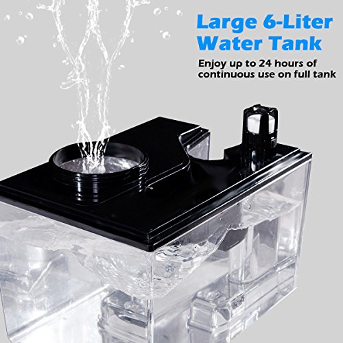 Specification Type: Warm Cool Mist Humidifier Material: ABS Voltage: 120V,/60Hz Warm Mist : 550mL/h Cool Mist: 250mL/h Water tank capacity: 6L Consecutive working hour: Above 12 hours Package Weight: 6lbs Product Dimension: 11" L x 7.5" W x 10.5" H Package Include: 1 x Warm Cool Mist Humidifier 0