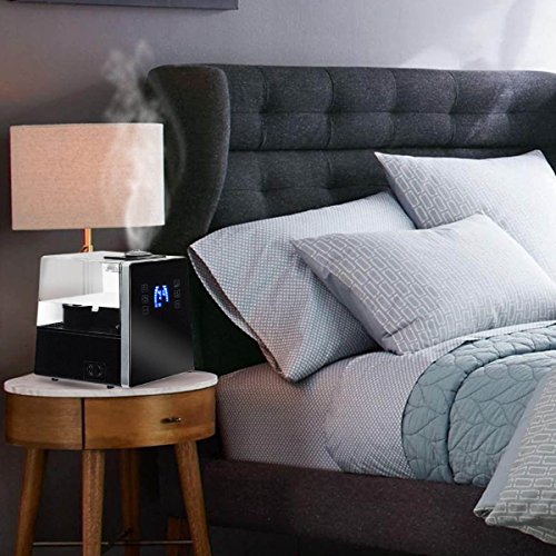 Feature 4L large capacity, 3 levels warm cool mist separately 360 rotatable dual-layer nozzle enables wider and uniform coverage Touch sensitive buttons with LED digital screen, simple to operate Built-in filter can easily remove limescale, germs, calcium and magnesium ions in hard water to offer purer and finer mist spraying, helpful for skin absorption and better breath Adds an aromatherapy basket for aroma diffusing Safety waterless auto shut off Covers up to 200 sq.ft (10~20m²) in your bedroom, living room, or office