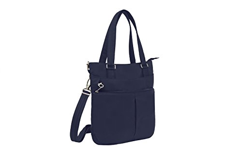 -. Binding : Apparel -. Brand : Travelon -. Department : unisex-adult -. Feature : Wear it 3 ways: a shoulder bag, cross body bag or handbag / Roomy Main Compartment; Front Smart Phone Pocket / Interior organizer with RFID blocking card and passport slots and 2 zip pockets; Tethered Key Clip with LED Light / Three Full size exterior pockets, front zip pocket locks for extra security; Adjustable shoulder strap and double carry handles, lays flat when not in use. / 14x13.25x3 -. Label : Travelon -. Manufacturer : Travelon -. Model : 42951 390 -. PackageQuantity : 1 -. ProductGroup : Apparel -. ProductTypeName : LAGE -. Publisher : Travelon -. Studio : Travelon -. Title : Travelon Anti-theft Classic Tote