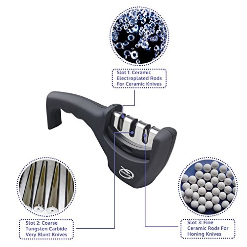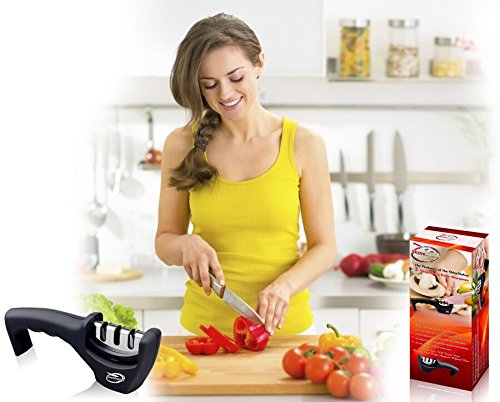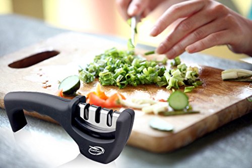 Best Knife Sharpener 3-Stage Ceramic Knife Sharpener system for Steel Knives Quality sharpeners in Black