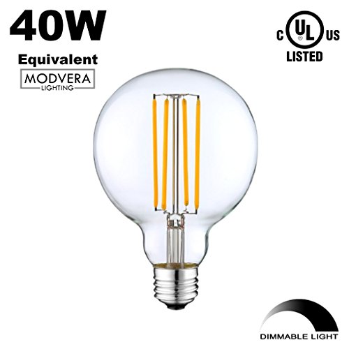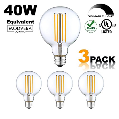 3 pack - Modvera G25 LED Globe Light Bulb 40 Watt Equivalent Uses Only 4 Watts, 420LM, 2700K- Dimmable G80 Bulb, Clear Glass. UL Listed RoHS Compliant
