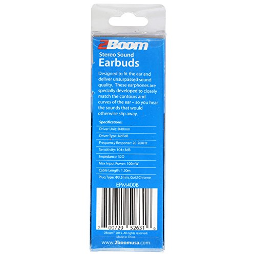 -. Binding : Electronics -. Brand : 2BOOM -. Color : Blue -. EAN : 0700729526316 -. Feature : The 2Boom Professional Sound Earphone gives everyday functionality with professional level sound. Artists and casual users alike will thrill to its high audio fidelity. Compatible with Apple, Android & Windows devices. / The Tangle Free, 120cm flat wire keeps these headphones neat and accessible. / In-line remote microphone makes taking calls a breeze while the volume control ensures easy hands free operation. / Ergonomic engineering fits easily and comfortably in the ear for hours of enjoyable use. / Box Includes: 2Boom Professional Sound Headphone, instruction manual and warranty registration card. -. Label : MiGear -. Manufacturer : MiGear -. PackageQuantity : 1 -. ProductGroup : Speakers -. ProductTypeName : HEADPHONES -. Publisher : MiGear -. Studio : MiGear -. Title : 2BOOM Stereo Sound Wired In Ear Buds Hands Free Microphone Comfort Ergonomic Headphone Blue -. UPC : 700729526316