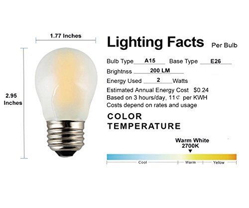 - AWESOME ENERGY SAVING LED LIGHT - 2 watts replaces the standard 25-watt incandescent bulb