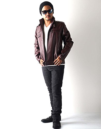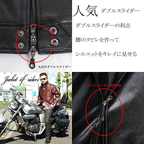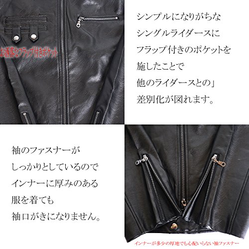 -. Feature : PUレザー(合皮)のライダースジャケット。 / 素材はリアルレザー感も感じさせ、スタンド襟もシングルならではのスタイリッシュさ。 / ダブルジップ(フロントファスナーを上からも下からも開けられる)お洒落な仕様 / 素材:(表地)合成皮革  (裏地)ポリエステル100% / サイズ目安表を商品説明文に記載させていただきました。※サイズを保証するものではありません。
