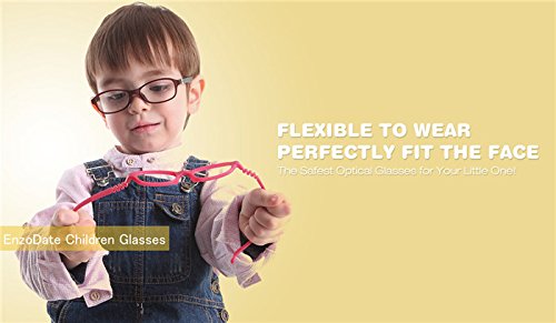 EnzoDate Boys Girls Optical Glasses & Strap Size 38/14 No Screw, Bendable Durable Babies Eyeglasses (pink)