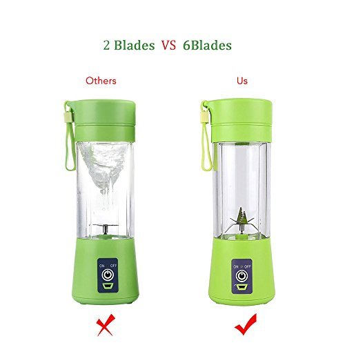 Blade Update for Superb Mixing - The updated version personal blender with six blades in 3d for superb mixing ,which can effortlessly pulverizes fruits, vegetables into amazing smoothies .It doesn't leave chunks of fruit and ice and no noisy like traditional blenders.