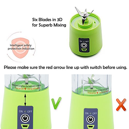 The Updated version portable personal juicer has six blades in 3d for superb mixing,you can use it as water bottle, fruit and vegetable juicer, milkshake, smoothies and jam maker,which allows you enjoy fresh nutrient retention and wonderful leisure time when you work, sport, hike, drive, travel, wild camping, picnic.