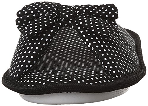 DeluxeComfort Printed Cotton Women Memory Foam Slipper with Butterfly Tie, Black Dots , 7 Inch to 8 Inch